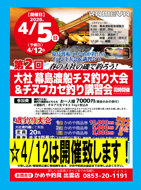 幕島渡船チヌ釣り大会を4/12に開催致しました!!