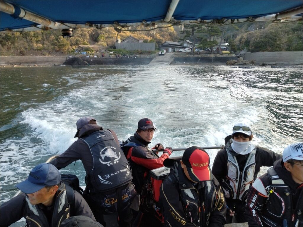 幕島渡船さん集合で、受付・磯クジ引き・開会ルール説明