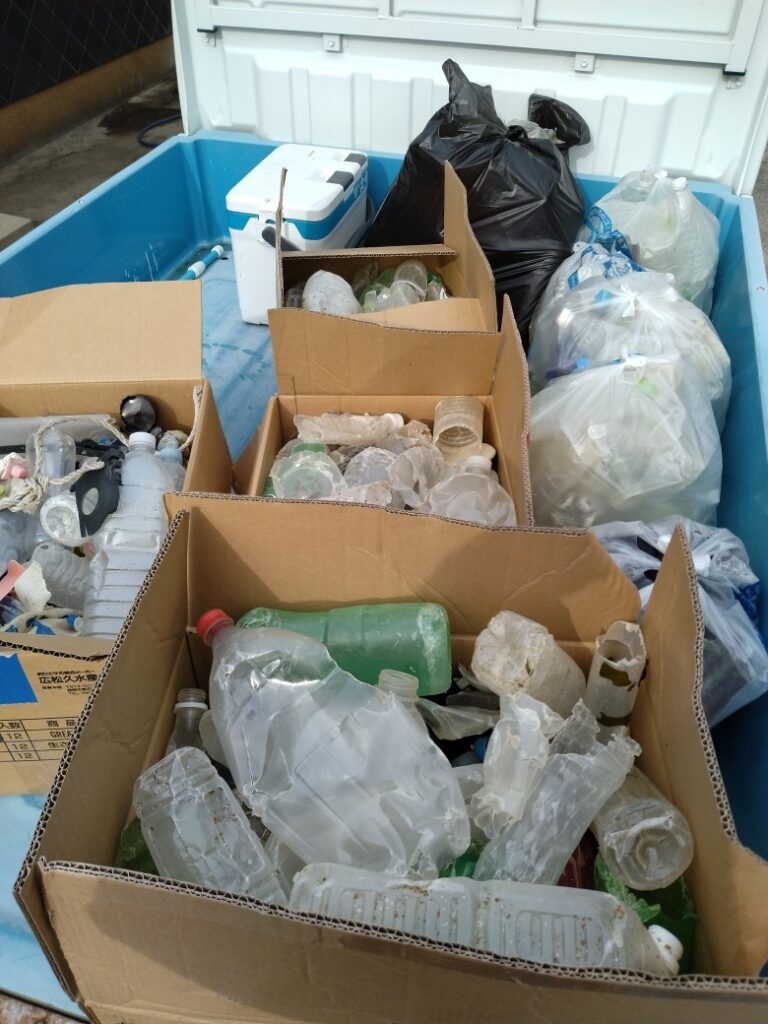 海岸全域にペットボトルゴミを中心に様々なゴミや