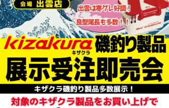 どうも、かめや釣具出雲店です!只今、店内イベントでキザクラ様の磯釣り関連商品展示中!日頃はお店に置い…
