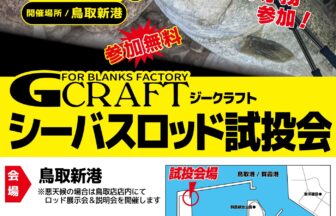 かめや釣具鳥取店です。毎年春恒例の、鳥取港での試投会今年も開催決定しました!今年は4/11(土)開催。Gクラフト様のシー…