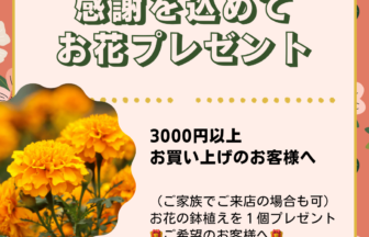 イベントのお知らせです。お花プレゼントイベント開催中!皆様のお越しをお待ちしております(^^)/
