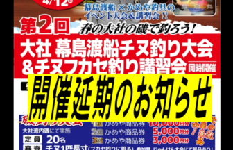 かめや釣具出雲店です。4/5に開催予定しておりました「幕島渡船チヌ釣り大会&フカセ釣り講習会」は悪天候が予想される為…