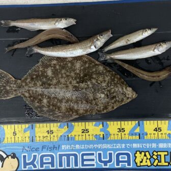 釣行日 2026.1.9 釣行者 N.T 様 釣行場所 島根半島 釣果 カレイ42cm キス 26.0cmを筆頭に6匹 タックル 投げ釣り 素…