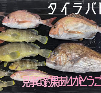 浜田沖、タイラバで最大85㎝の真鯛を筆頭に6枚の釣果。他にレンコダイ、ホウボウ、サバも釣られていました。