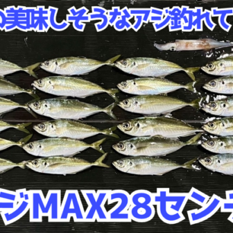 釣行日 2026/04/03 釣行場所 浜田波止 釣果 アジMax28㎝ タックル アジング 良型のアジ!!アベレージは25㎝ですが一番大きの…