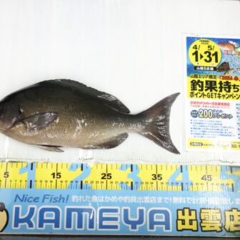 釣行日 4月19日 釣行場所 浜田港 釣果 鮃73cm なんとエギでの釣果!お持込みありがとうございます♪