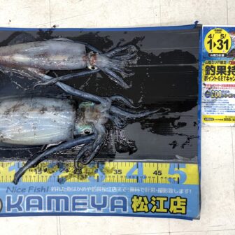 釣行日 2026.4.21 釣行者 S.Y様 釣行場所 大社 釣果 アオリイカ2杯 最大1991g タックル エギ 釣果のお持ち込みあり…