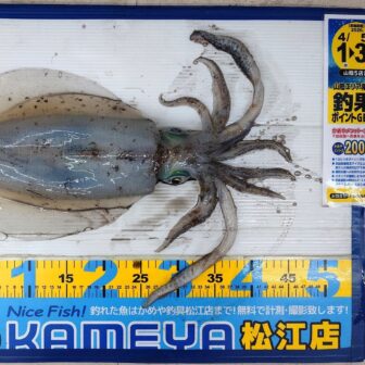 釣行日2026年4月22日釣行者S.Y様釣行場所大社港釣果甲イカ1杯釣果のお持込み、誠にありがとうございます!大社ではアオリはもちろん、コウイカも好調!是非ご…