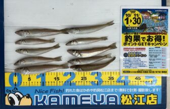アオリイカ釣果のお持ち込みありがとうございます。エギはドロー4ピンククリア・UVブルー・オレンジ・チェックマーブルとのこと。