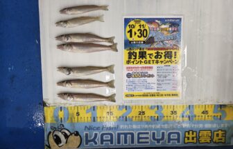 エサ巻きエギにサヨリを巻き、軽くしゃくって釣れました(^^)