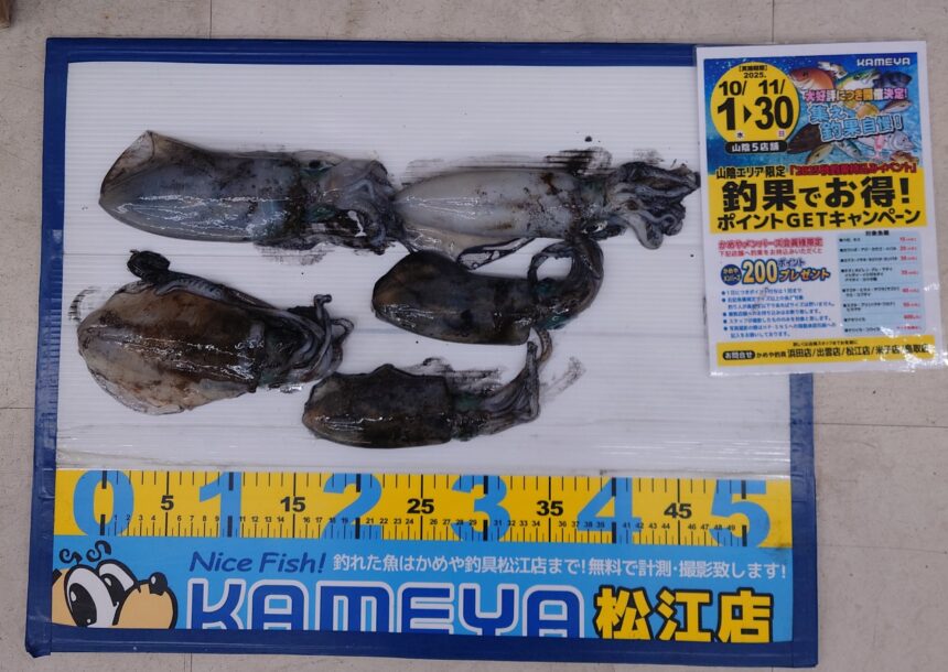釣果のお持ち込み有難う御座います。アオリイカ好調に釣れていますね。