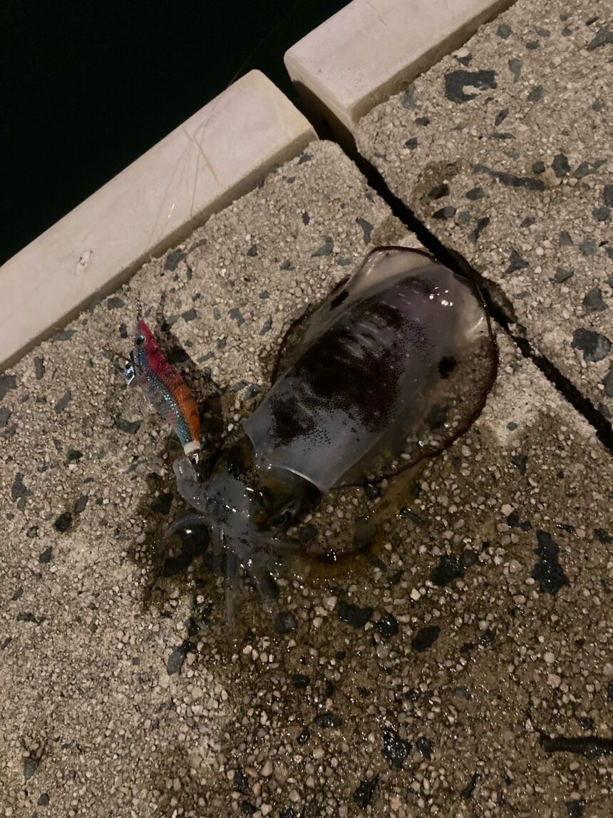 横風が強く、アタリが分かりにくい状況だったので、手前まで追いかけてきた小ぶりなアオリに遊んでいただきました。
