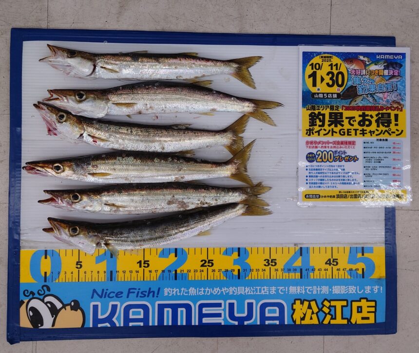 釣果のお持ち込みありがとうございます。太さもあり美味しそうなカマスですね。只今釣果お持ち込みキャンペーン開催中です。