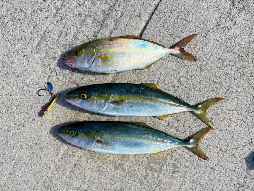 湾内でかなりの規模のボイルがあり、ナブラ撃ちするとツバスの35㎝~45㎝が入れ食いでした!