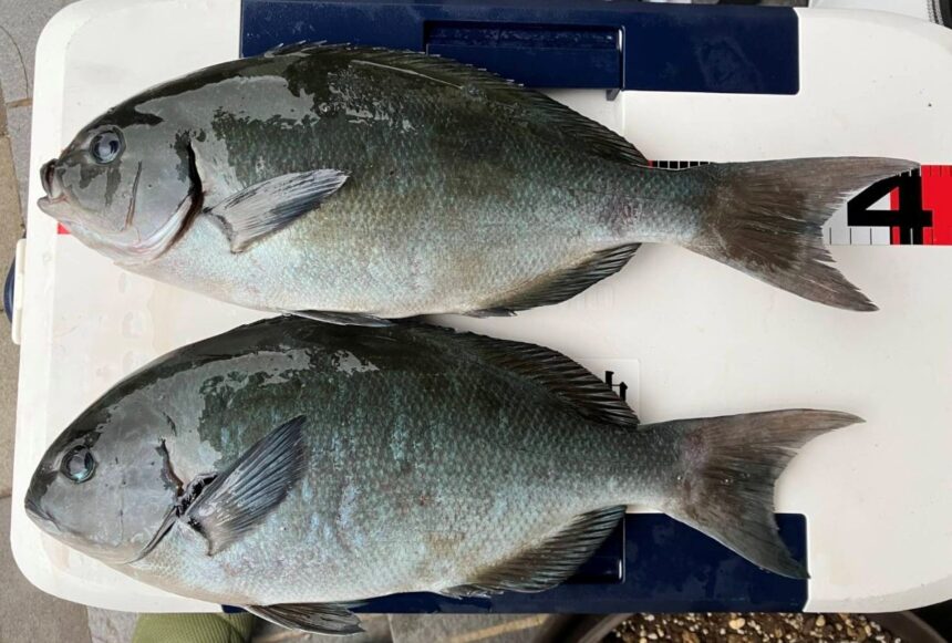 魚瀬にて良型尾長グレの釣果です。お見事!!