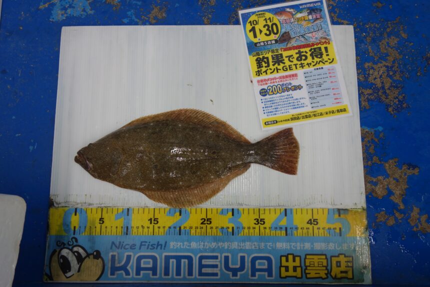 長浜サーフにてヒラメ 43.5㎝のお持ち込み頂きました!
