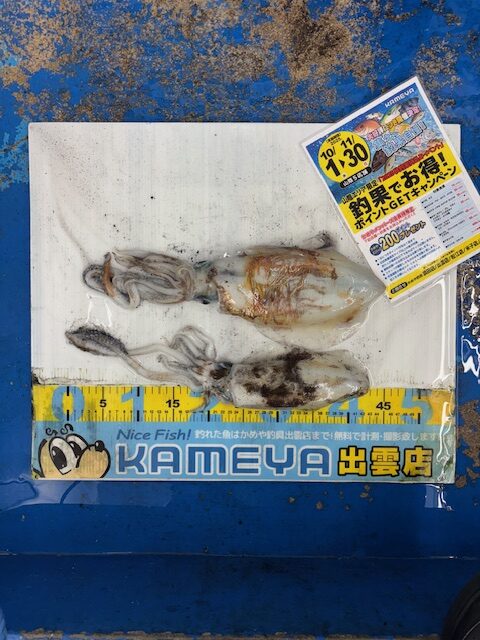 大社近郊で良型アオリイカが釣れております!サイズも500g~700g大きいもので900gのアオリイカも釣れています!