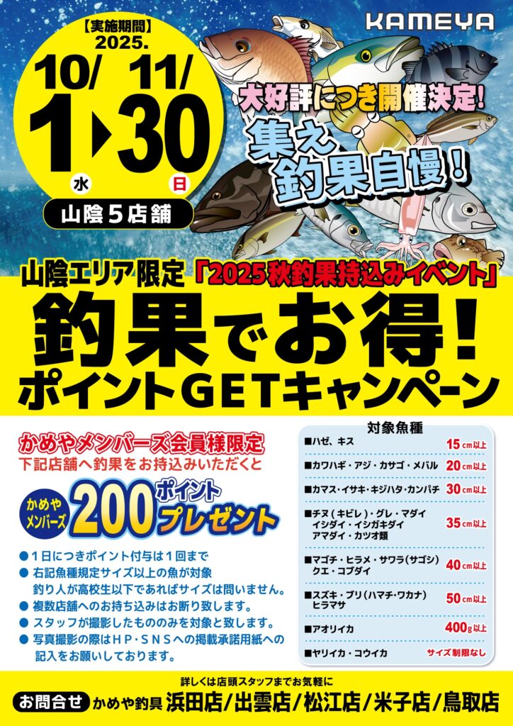 只今、釣果持ち込みポイントゲットキャンペーンを行っております🐠