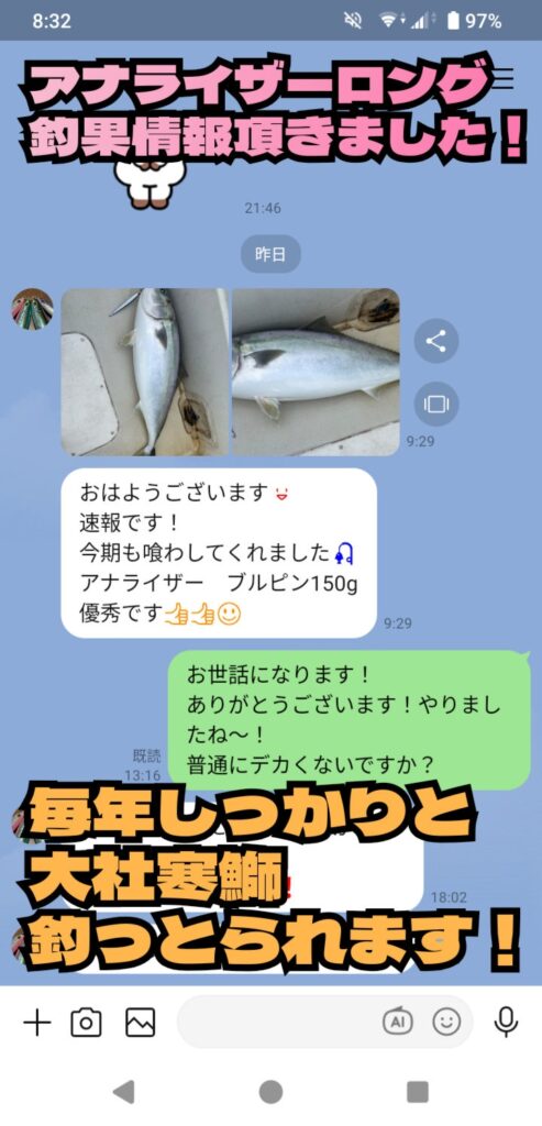 毎年アナライザーロングOFで10kgクラスの鰤を仕留めておられ、