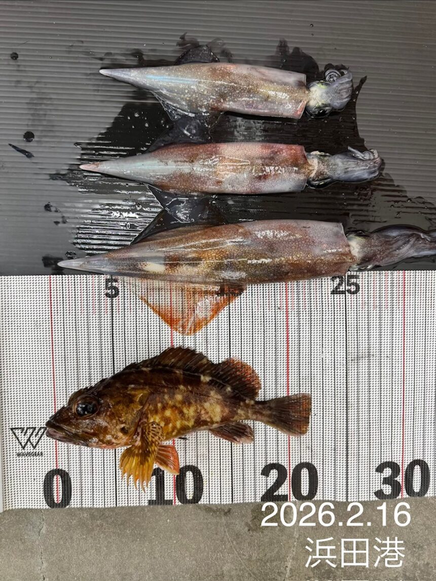 カサゴはアジングロッド、ヤリイカはエサ巻きエギでのご釣果🎣