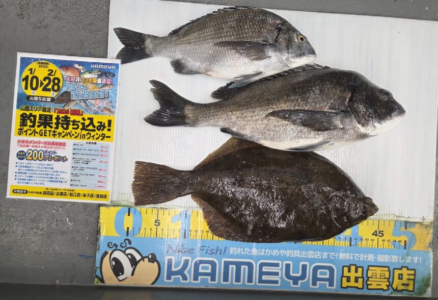 大田市の波止にて良型のカレイ!チヌ!