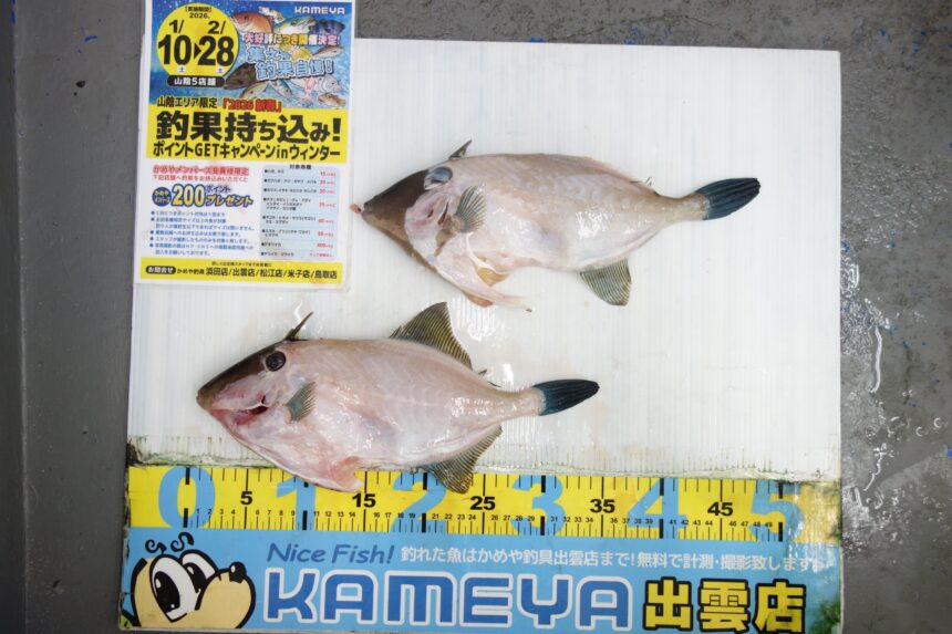 大社にてカワハギの釣果となります。
