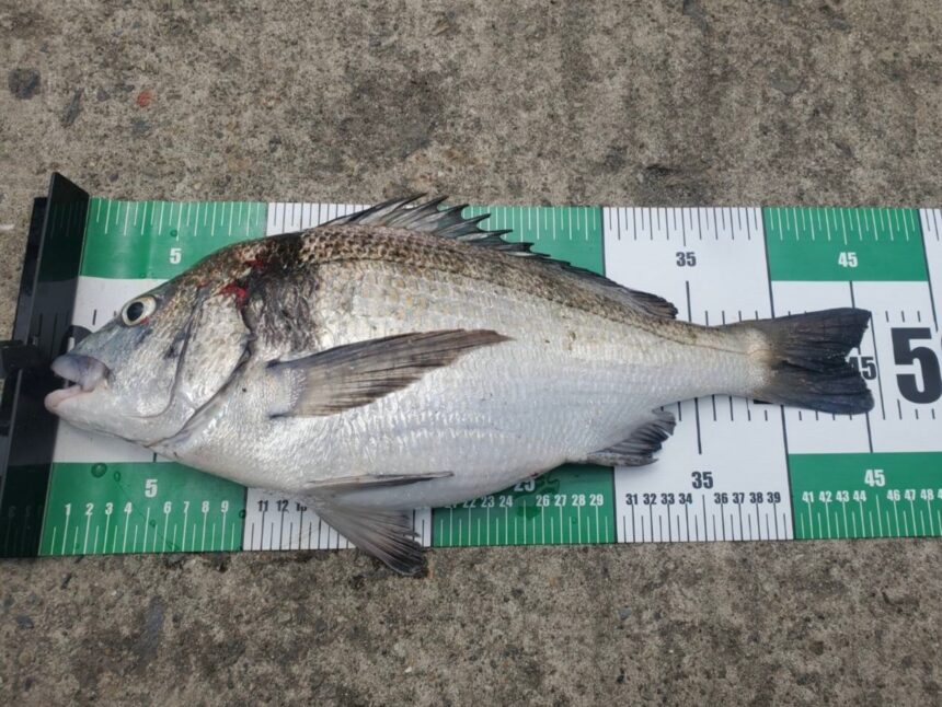 波止からのカゴ釣りでチヌ。数もそこそこ出て、腹パンパンの良型も・・・