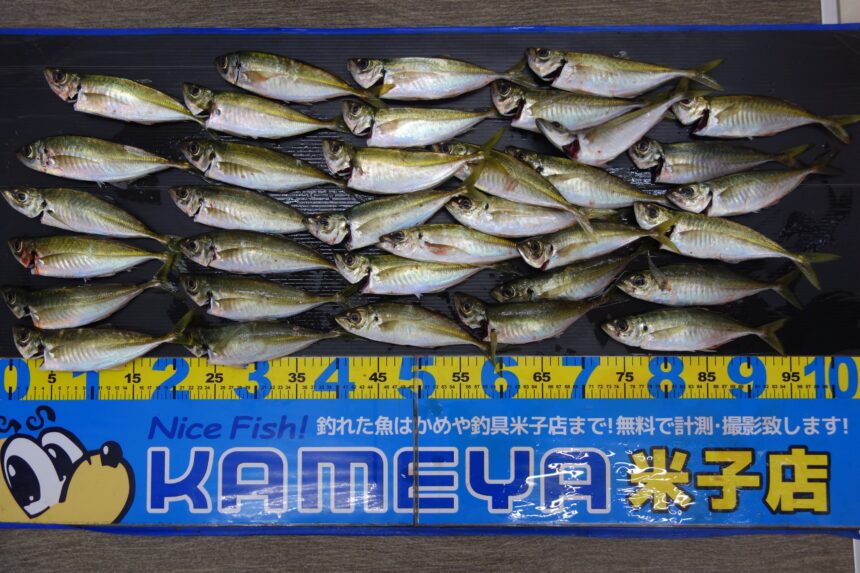 しっかり身がついたおいしそうなアジですね!サビキ釣りでの釣果で、どうやら美保湾内を回遊している様子です!タイミングが合えばこのようにたくさん釣れるそうです!皆さんも是非挑戦してみてください!