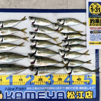 釣行日 2026.4.26 釣行者 K.S様 釣行場所 境港 釣果 アジ 21匹 最大22㎝ タックル 地アミ サビキ 釣果のお持ち…