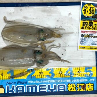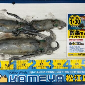 釣人 : S.A 様釣行日 : 2025年11月24日釣場 : 島根半島釣果・アオリイカ 最大 700g 合計 2ハイ・カレイ 39㎝ 1尾・ハマチ 最大 36㎝ 合計 8尾釣法・アオリイカ → …