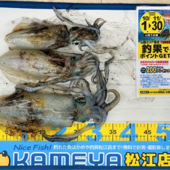 釣行日 2025.10.26 釣行者 I・O様 釣行場所 島根半島 釣果 アオリイカ 721gまでが3杯 タックル エギング・ウキ釣り …