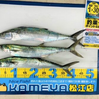 釣行日 2025.10.25 釣行者 Y様 釣行場所 島根半島 釣果 サゴシ3匹 タックル ショアジギング 素敵なお持ち込みありが…