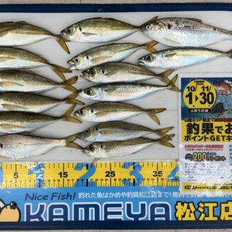 釣行日 2025/11/08 釣行場所 江津周辺 釣果 アジ20㎝前後×26匹