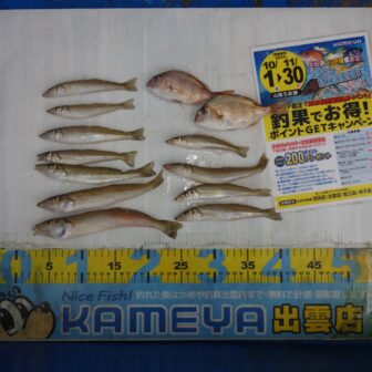 釣行日 2025年11月8日 釣行者 ももか様 釣行場所 大社築港 釣果 キス18cmを筆頭にチャリコ、イトヒキハゼ等 釣果のお持ち込…