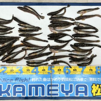 釣行日 2025.11.29 釣行者 山田 喜宏様 釣行場所 宍道湖 釣果 ハゼ 70匹 最大20センチ以上 タックル エサ釣り(青虫…