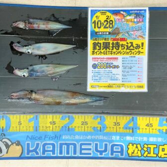 釣行日 2026.1.31 釣行者 K,I様 釣行場所 島根半島 釣果 ヤリイカ4杯 タックル エギング(エサ巻きエギ)・ウキ釣り …