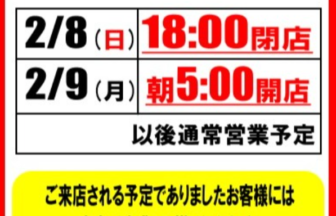 本日2/8㈰ 営業時間変更のお知らせ