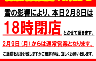 2. 本日2/8㈰ 営業時間変更のお知らせ