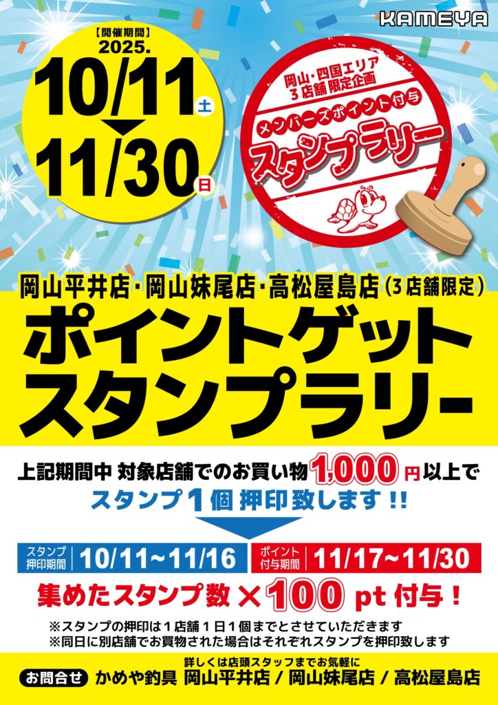 かめや釣具岡山妹尾店/岡山平井店/高松屋島店です。