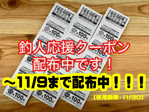 そして只今【11月釣り人応援クーポン券】を11/9まで配布中!!!