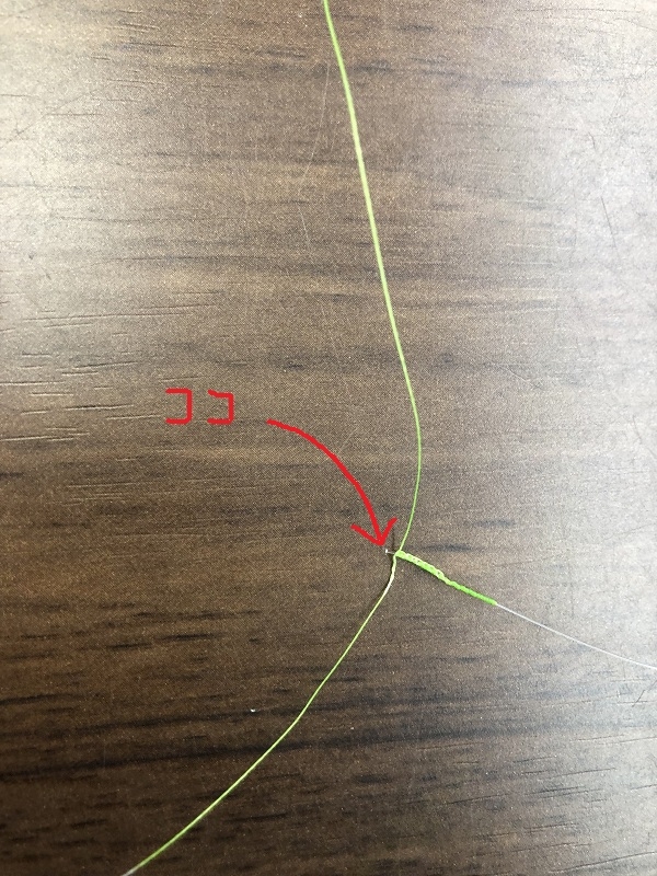これは、抜け防止ではなく、ハサミで切ったリーダーの端は