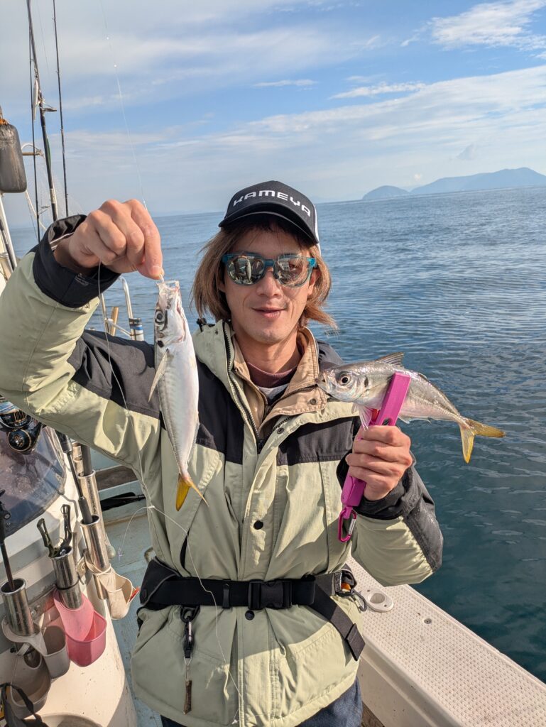 30㎝越えの大アジを筆頭に入れ食いの中、青物も活性が上がり大忙し!!