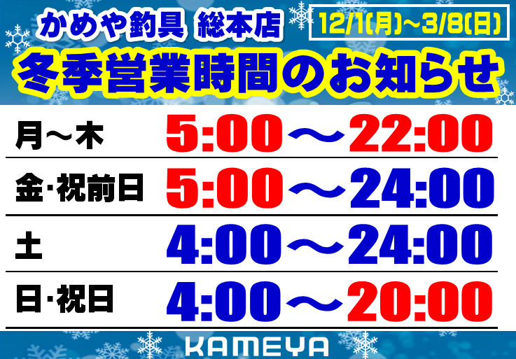 12/1、来週の月曜日から総本店は上記時間帯に変更ですので