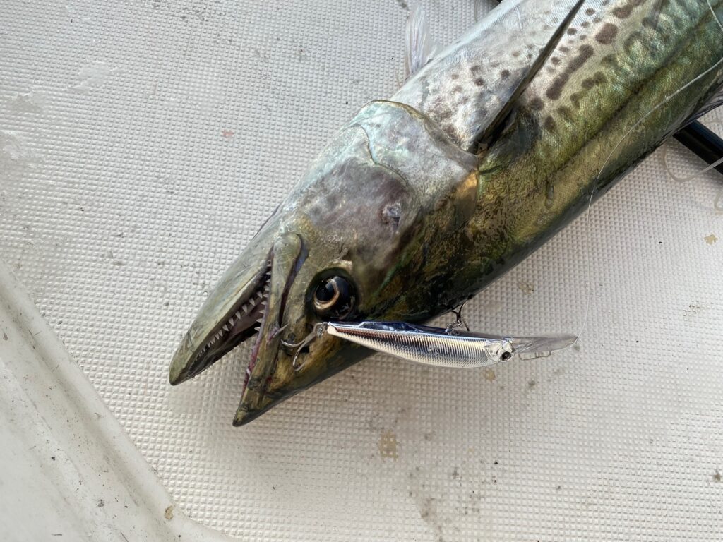 射程圏内でジャンプしたサワラにミノーを直撃!