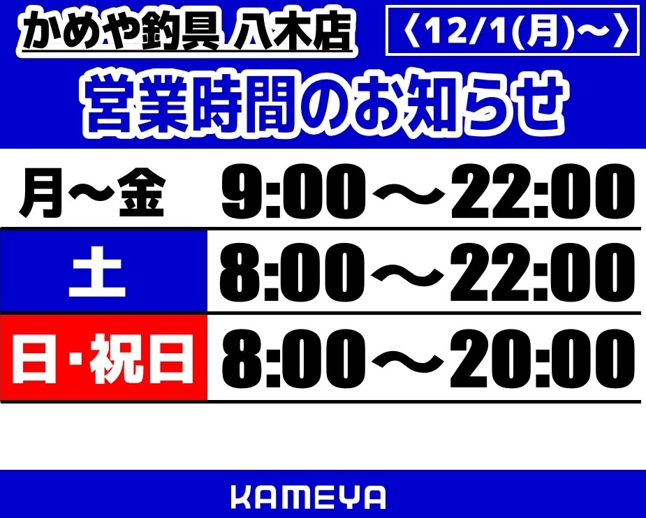 12月1日(月)より冬季営業時間