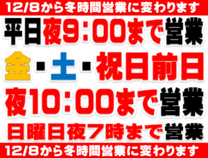 週末の開店時間と閉店時間が1時間ずつ短縮されますので、