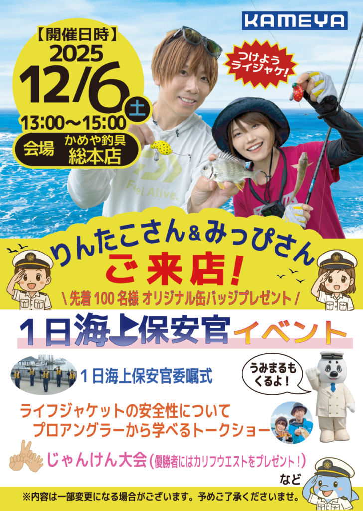 2025年12月もかめや釣具総本店にご来店くださいませ~~😇