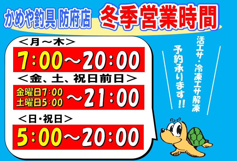 そして本日より開店時間が冬期になってますよ~(;’∀’)