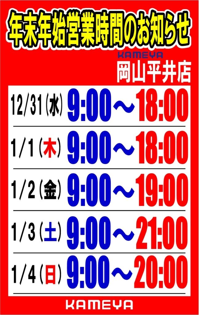 かめや釣具岡山平井店は年末年始も休まず営業中です✨